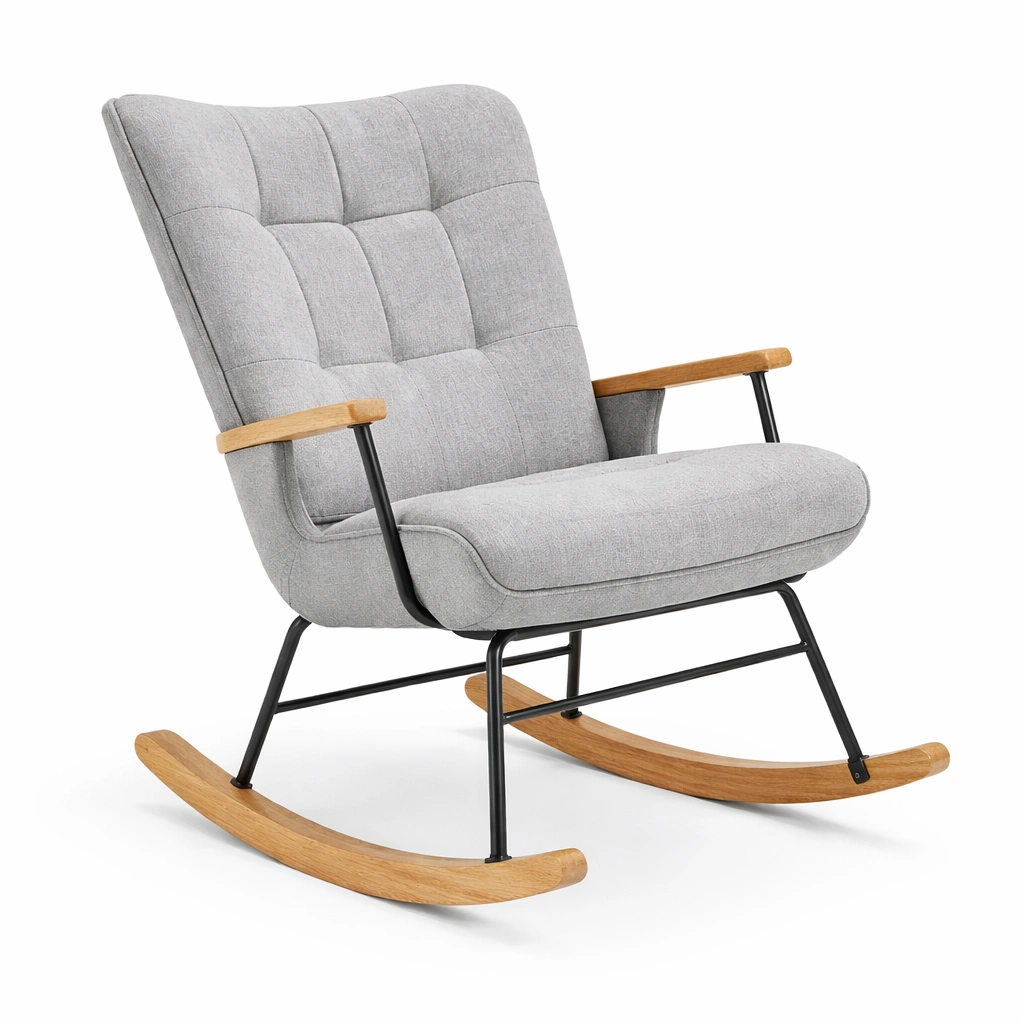 Schaukelstuhl Grau Stoff Metall Holz