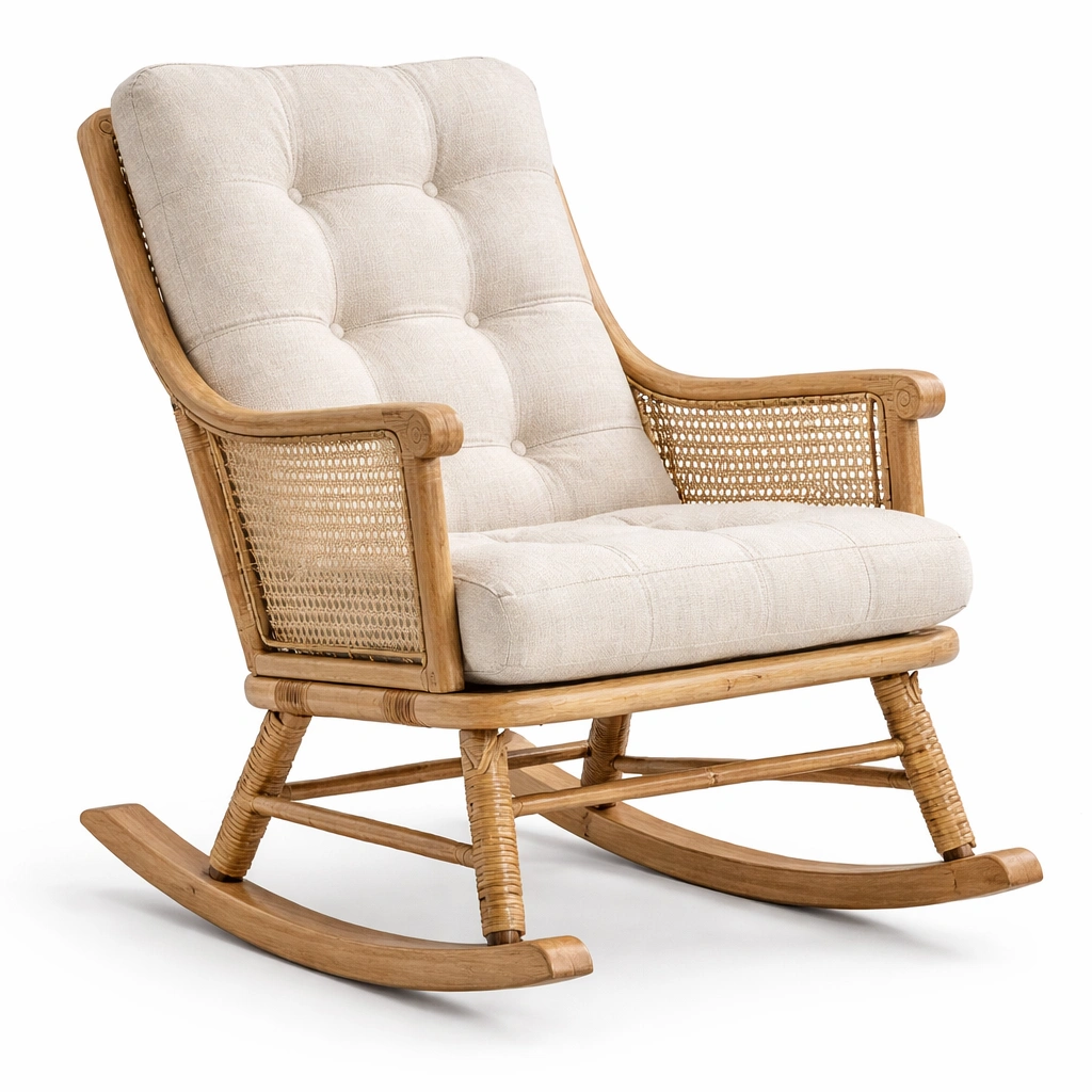 Schaukelstuhl Rattan mit Baumwollbezug Beige