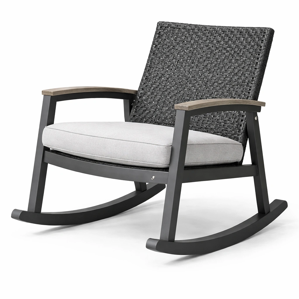 Schaukelstuhl Aluminium Polyrattan Grau Hellgrau