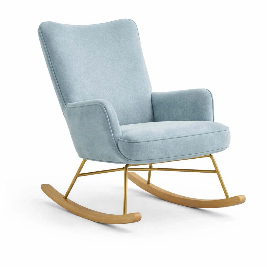 Schaukelstuhl Baumwollstoff Hellblau Metall Holz