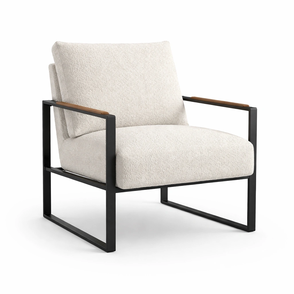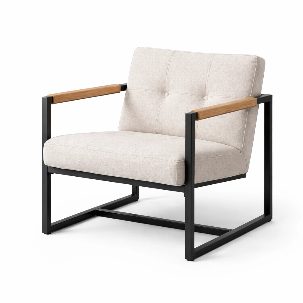 Sessel Metall mit Stoffbezug Creme und Holzakzenten